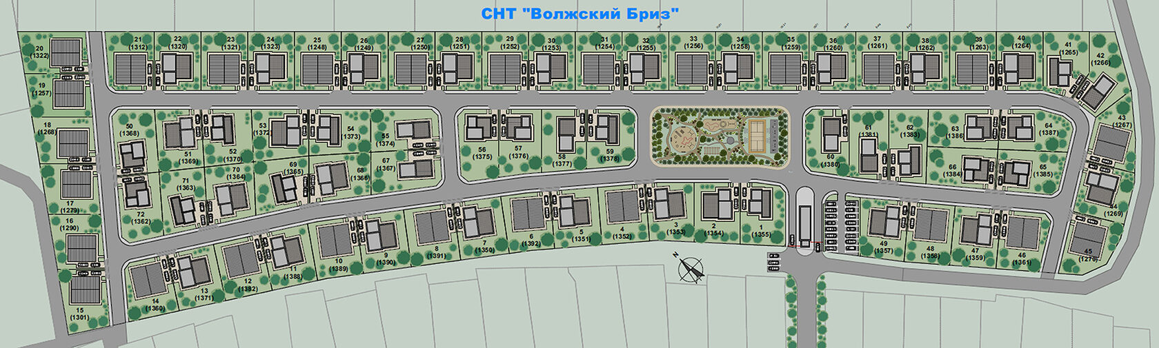 - На территории поселка запроектировано строительство 72 домов с земельными участками размером 6 соток.